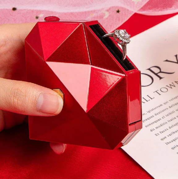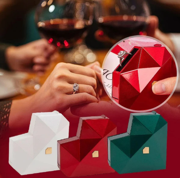 Elegant Heart-Shaped Ring Box- Romantic Velvet Jewelry Case for Proposal