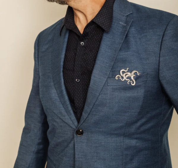 Meet our Octopus Badge! A unique take on a classic blazer accessory. This hand-carved octopus is an instant hit with its intricate details. Clever use of magnets and a small piece of plastic creates an adjustable insert that allows it to sit upright and accommodate varying pocket depths. For the man who has everything, we guarantee he doesn’t have it!