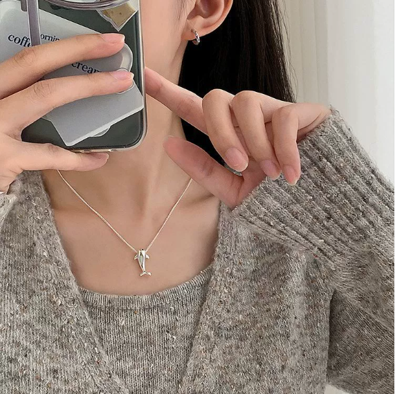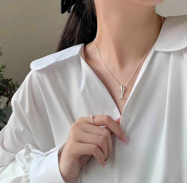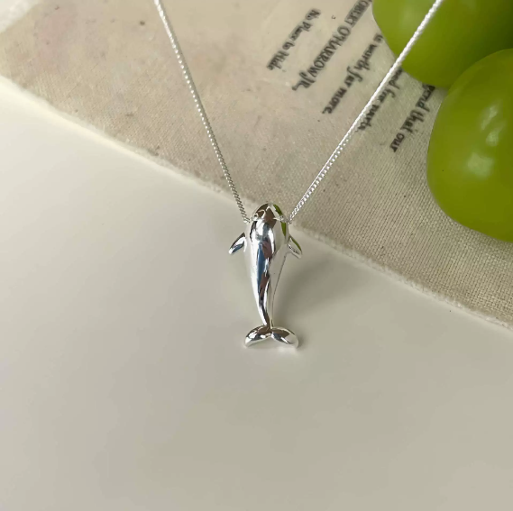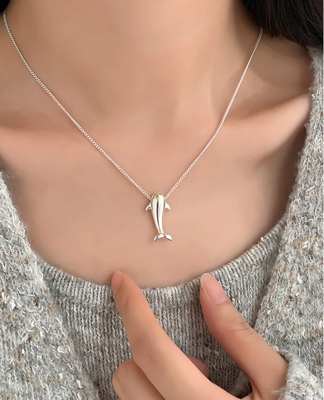 Dolphin-shaped pendant with an elegant, minimalist silhouette