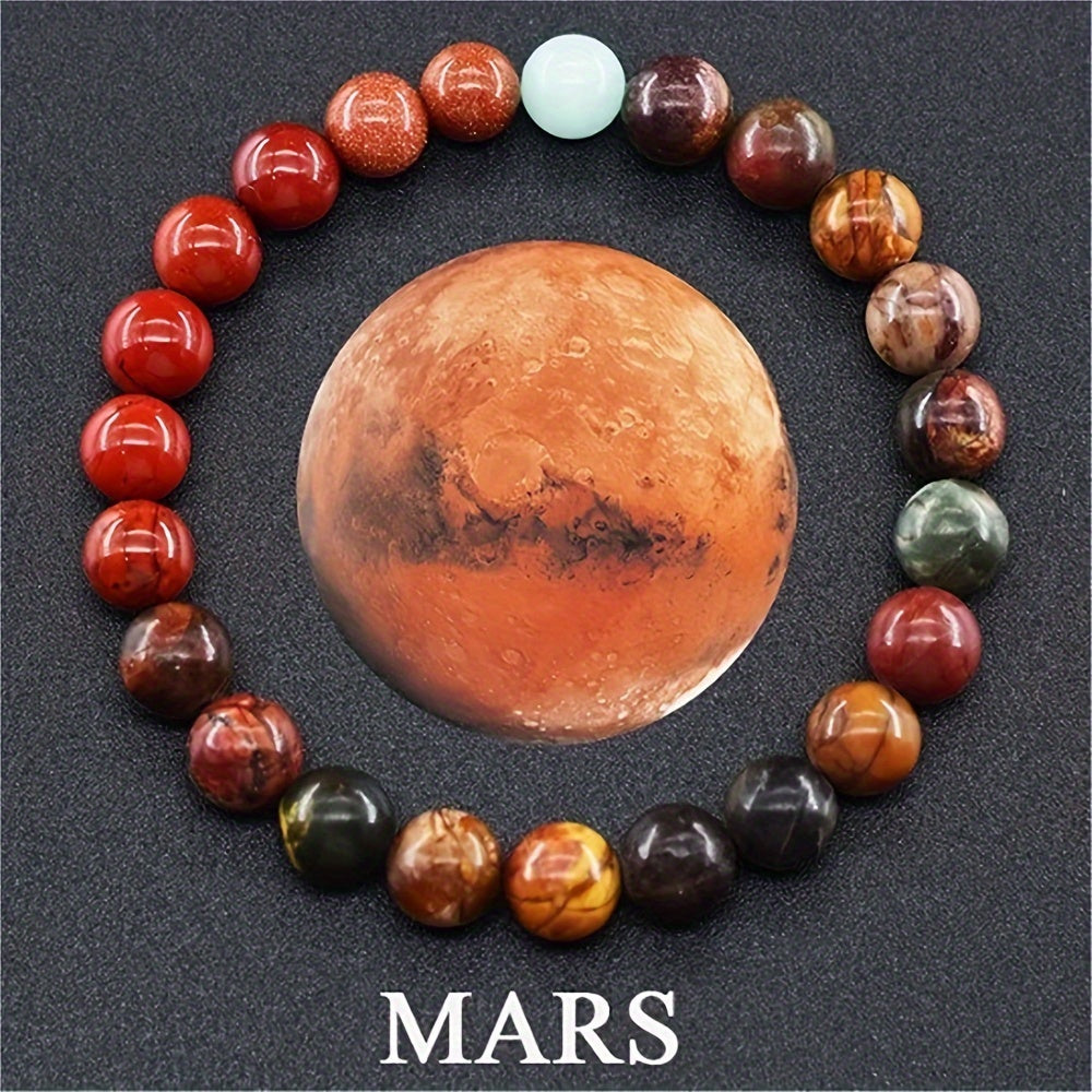 Inspired by our Solar System in the Universe, each of these bracelets has been created from natural stone mined from the earth -carefully chosen natural stones that have remarkable similarity to the actual 9 planets Mercury, Venus, Earth, Mars, Saturn, Jupiter, Uranus, Neptune and Pluto. plus we havent forgotten the moon or the Sun- the center of the solar system.