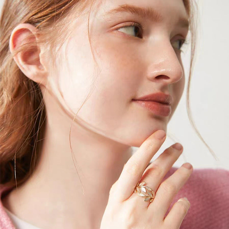 1,Golden Leaf Ring: This leaf ring features an intricate and stunning leaf design that adds a touch of natural elegance to any outfit. The delicate detailing and beautiful workmanship of the leaves make this ring a statement piece for women who appreciate unique fashion accessories.