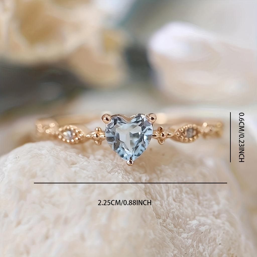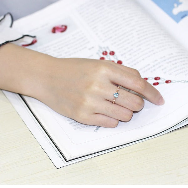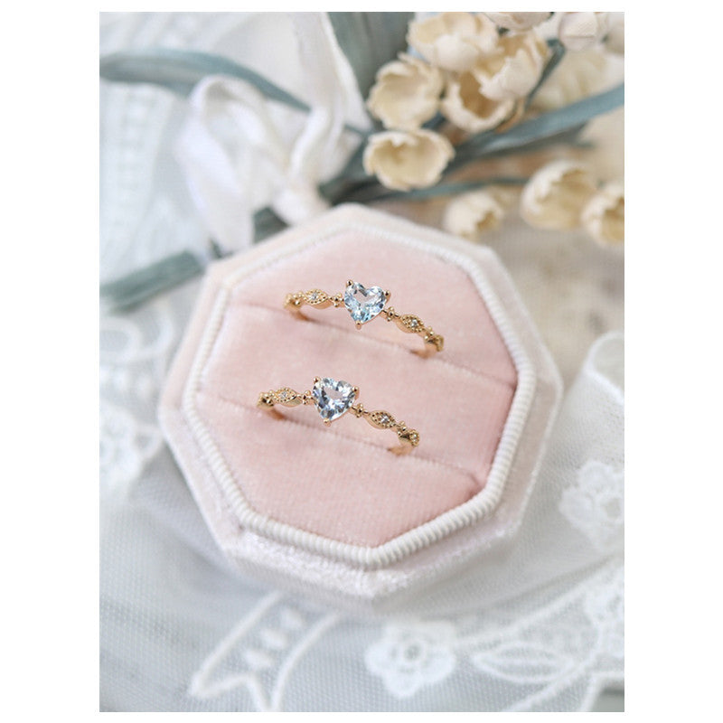 Aquamarine is said to represent happiness, hope, and everlasting. With a heart shape cut, it sends a strong message of forever love. This is an elegant and unique ring that is well-designed.Special ring for special her. A perfect gift for her or a luxury choice of self-gifting.