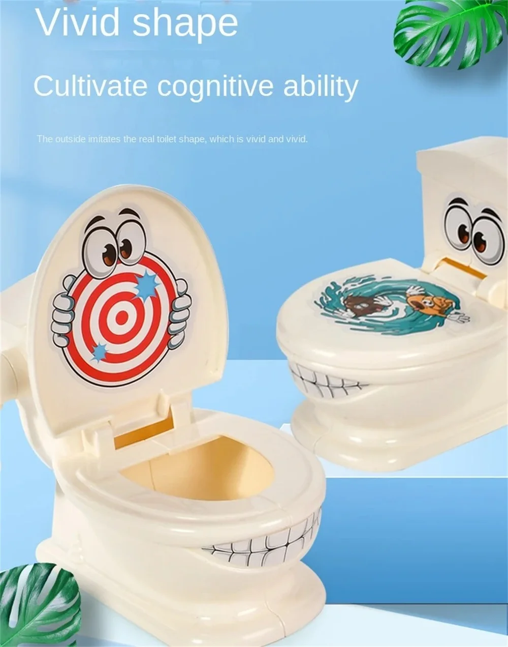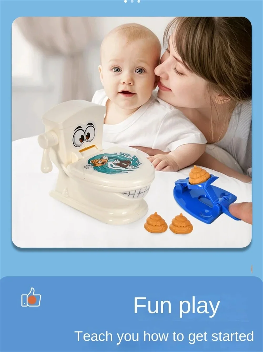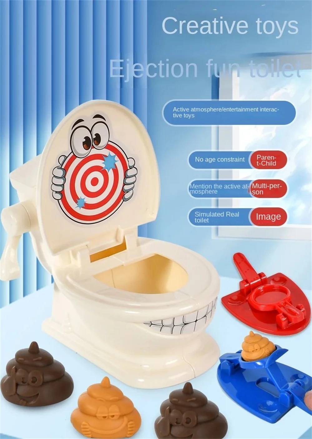 How to play: Double PK ① Fun-filled bath! 2 Read, aim... and eject! The catapult drops the poop into the toilet! ③ Win the game! The first one to throw all the poop into the toilet, then close the toilet lid,